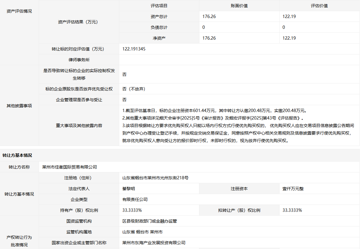 轉(zhuǎn)讓方:萊州市佳衡國際貿(mào)易有限公司