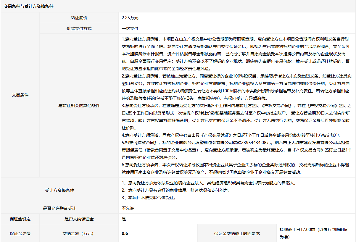 轉讓方:煙臺市正大城市建設發(fā)展有限公司