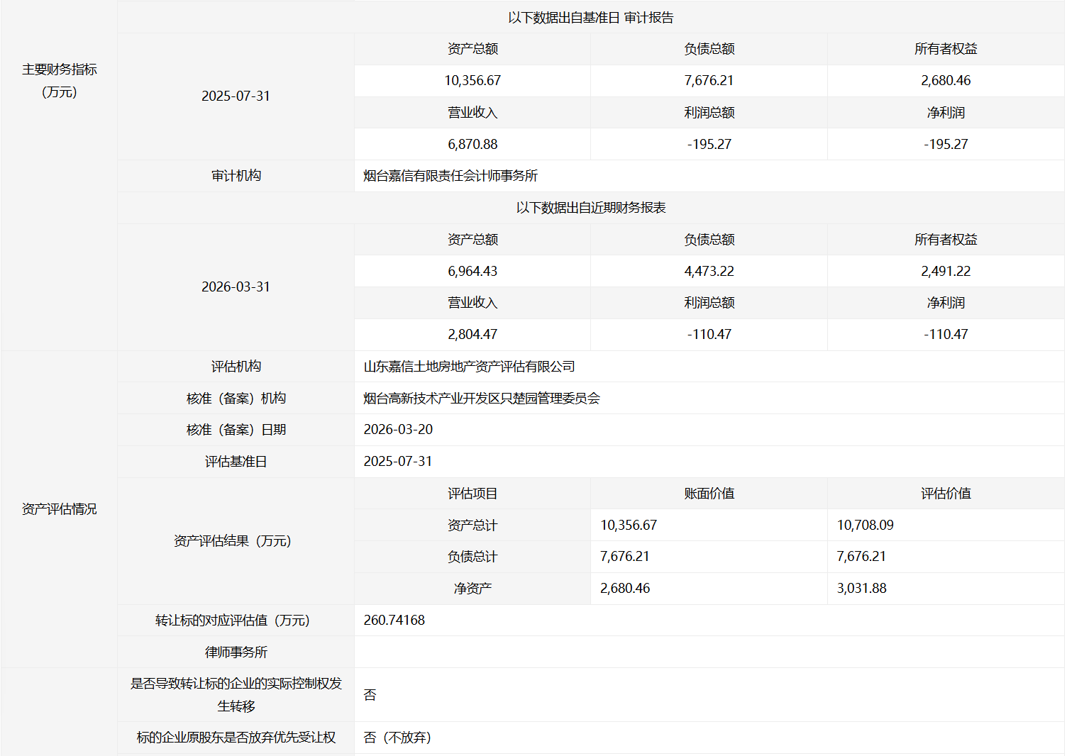• 轉(zhuǎn)讓方:煙臺市楚順投資有限公司