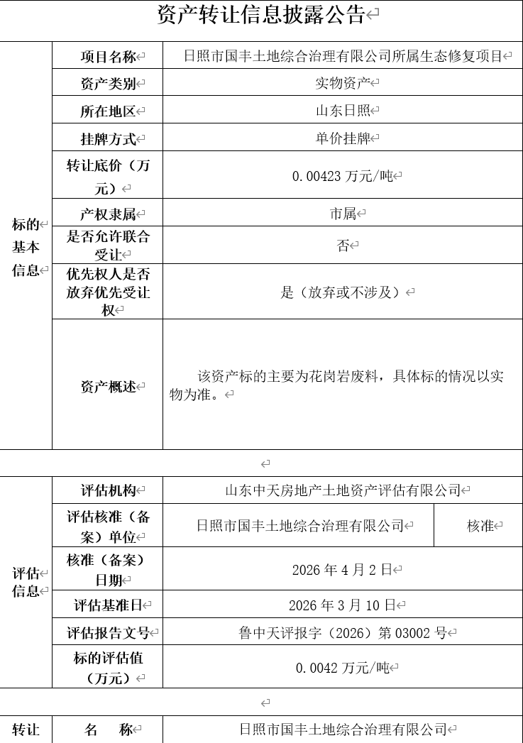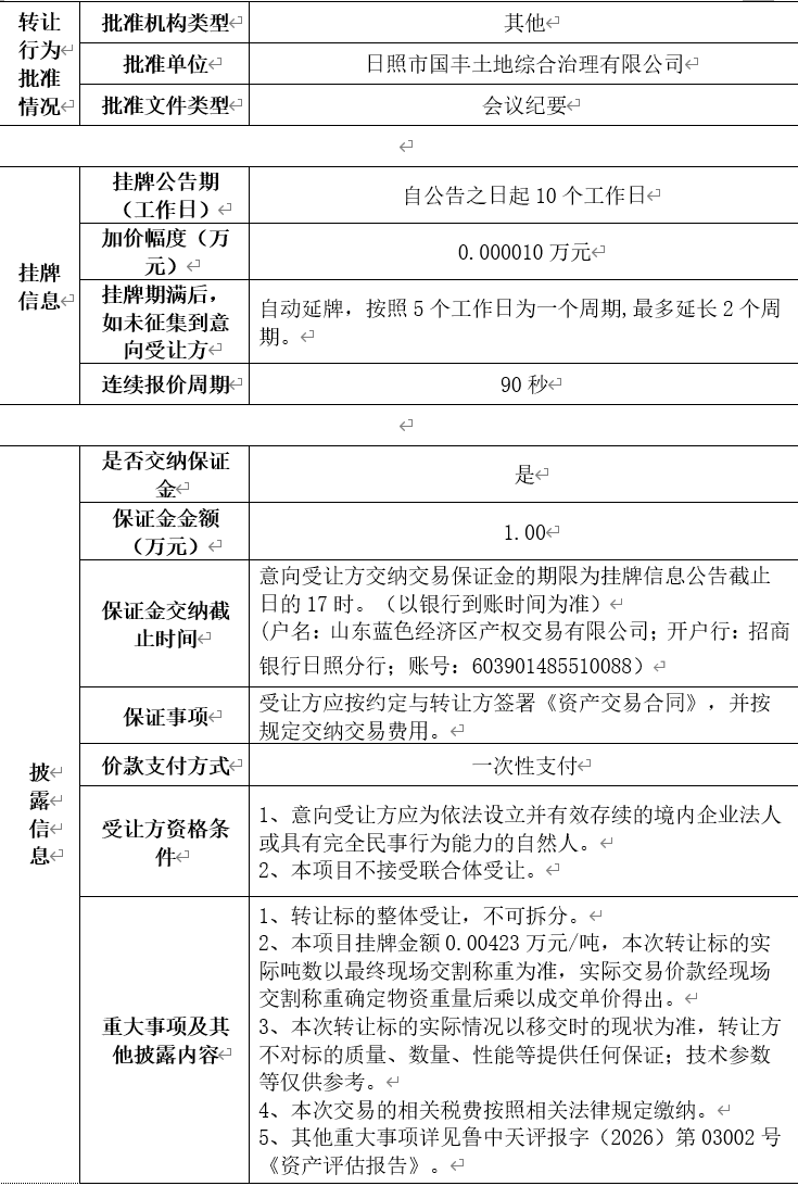 轉(zhuǎn)讓底價: 0.00423萬元/噸