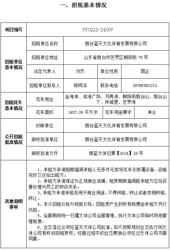 煙臺藍天文化體育發(fā)展有限公司部分花車招租