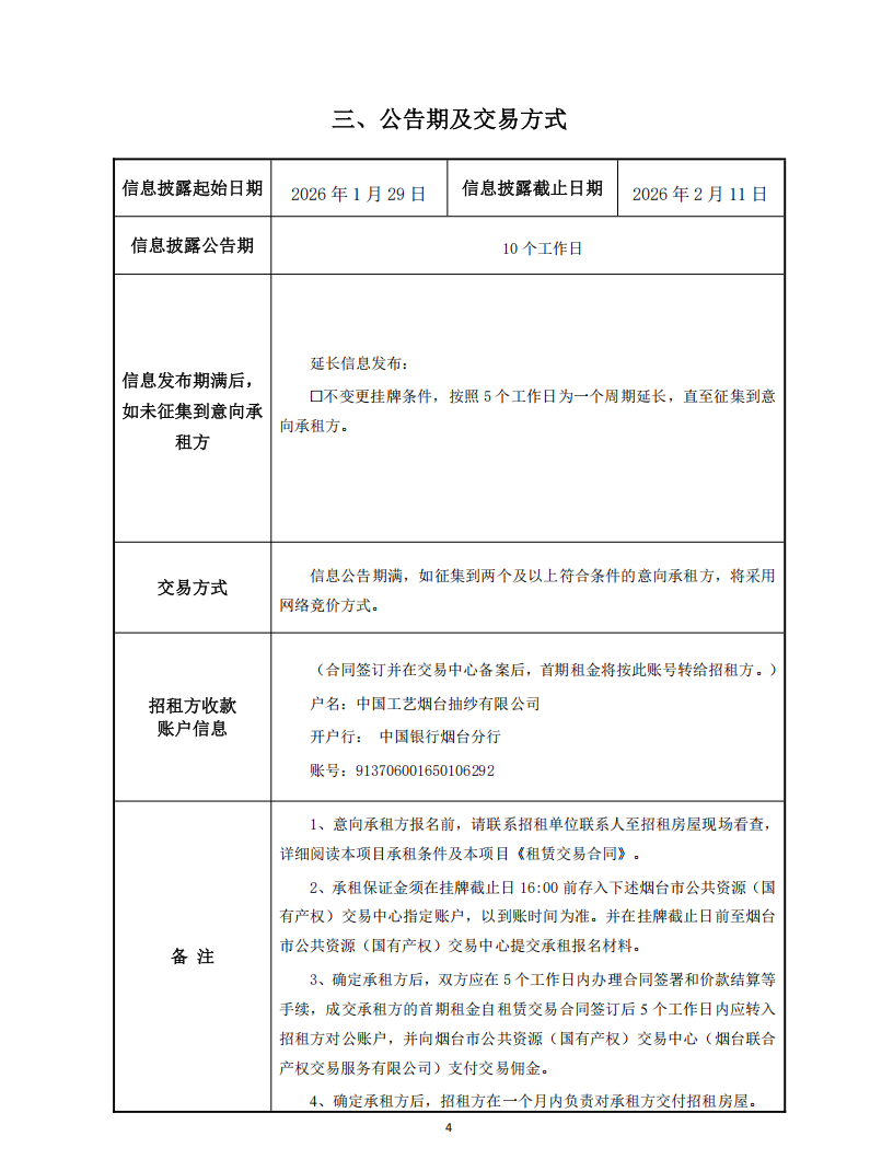 掛牌起止日期:2026年1月29日-2026年3月10日