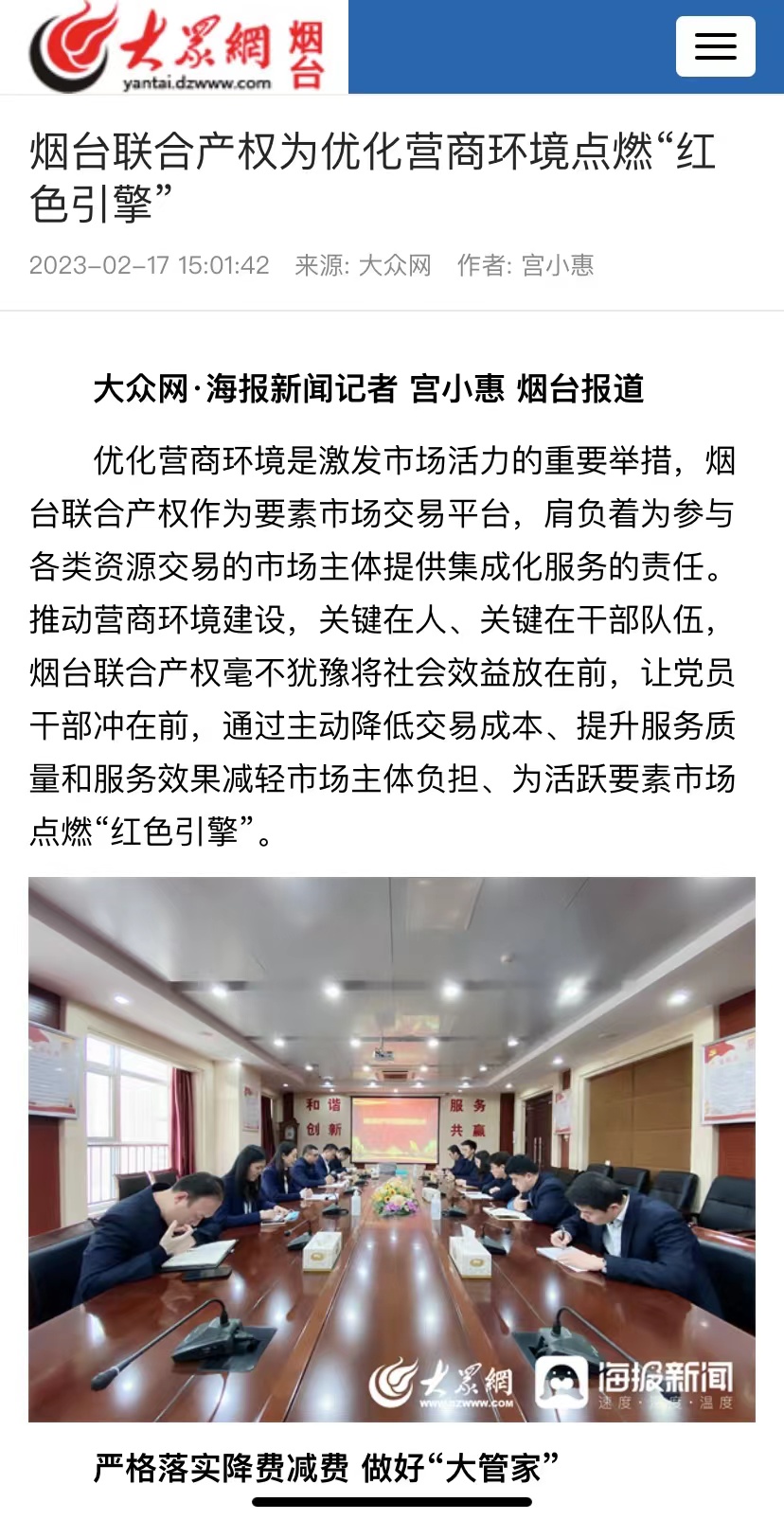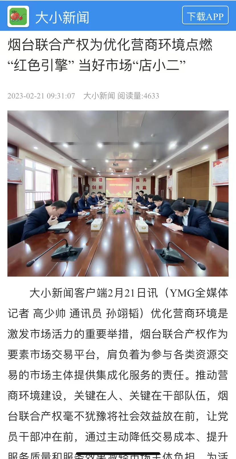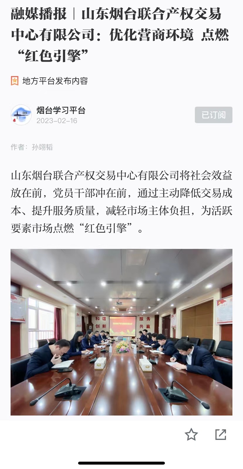 近日,“學(xué)習(xí)強(qiáng)國(guó)”煙臺(tái)平臺(tái)、煙臺(tái)日?qǐng)?bào)社大小新聞網(wǎng)、大眾網(wǎng)煙臺(tái)刊發(fā)署名文章《煙臺(tái)聯(lián)合產(chǎn)權(quán)為優(yōu)化營(yíng)商環(huán)境點(diǎn)燃“紅色引擎”當(dāng)好市場(chǎng)“店小二”》,全面介紹了2022年煙臺(tái)聯(lián)合產(chǎn)權(quán)作為要素市場(chǎng)交易平臺(tái),肩負(fù)著為參與各類資源交易的市場(chǎng)主體提供集成化服務(wù)的責(zé)任,在推動(dòng)營(yíng)商環(huán)境建設(shè)方面,毫不猶豫將社會(huì)效益放在前,讓黨員干部沖在前,通過(guò)主動(dòng)降低交易成本、提升服務(wù)質(zhì)量和服務(wù)效果減輕市場(chǎng)主體負(fù)擔(dān)、為活躍要素市場(chǎng)點(diǎn)燃“紅色引擎”。