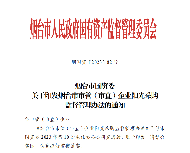助力國(guó)資國(guó)企陽(yáng)光采購(gòu),《煙臺(tái)市市管(市直)企業(yè)陽(yáng)光采購(gòu)監(jiān)督管理辦法》印發(fā)